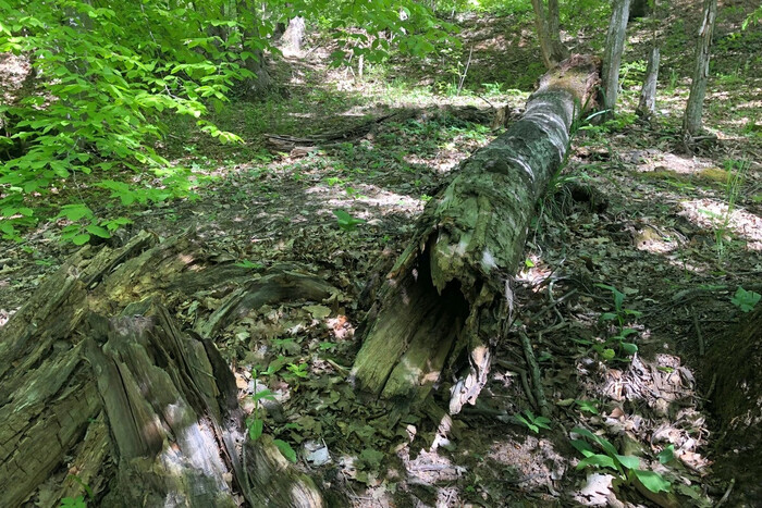 И вот, в очередную нашу вылазку к этим совам, оказалось, что дерево, на котором и располагалось гнездо серой неясыти, и которое простояло не один десяток лет, упало.