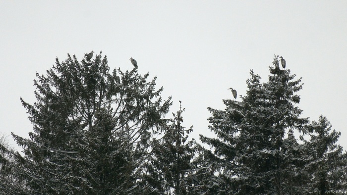 Основная часть серых цапель вернется к нам из теплых краев в конце марта – начале апреля. А этим тридцати не надо тратить силы на перелет: они уже дома.
