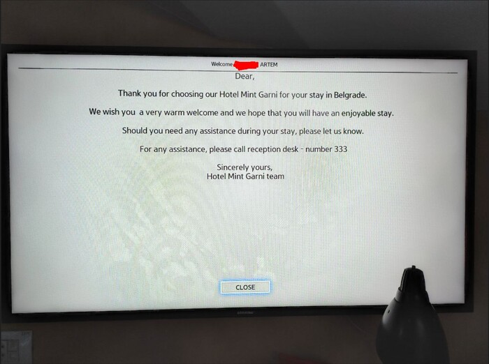 Довезя меня до гостишки, он помог закинуть мне чемоданы в гостиницу и прям буквально передал на руки девушке с ресепшена по имени Катерина. Катерина была прям очень бойкой девушкой, быстро оформила меня, я прям буквально за минуту получил документ временной регистрации в отеле, так называемый "Бели картон", но больше меня поразило, что тут принято тоже пожимать девушке руку и как Катерина рванула вместе с моими чемоданами к лифту, показывая мне дорогу к моему номеру, не обращая внимания на мои слова, что я сам донесу чемоданы.