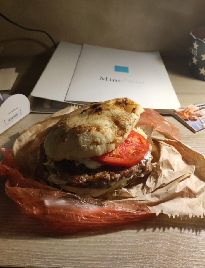 Переоблачившись, я решил перед сном что-то поесть и купить рекомендованную водителем симкарту сербского оператора. Переодевшись, ибо жара проняла, дошёл сначала до Катерины, поменял у неё немного евро на местные динары, и отправился к местному ларёчку, где меня ждал первый удар - оказывается, люди в Сербии говорят в основном на сербском, английский хоть и частая опция, но не повсеместная (: Благо, что я, подключившись к WiFi в гостинице, успел зайти на сайт оператора и смог показать на телефоне, что мне надо. Вернувшись в гостиницу, попросил Катерину помочь мне с настройкой тарифа, но выяснилось, что ларёчки тут только продают симки, а опции пополнять баланс у них нет, так что возник новый квест - посетить офис этого оператора. Поблагодарив и вернувшись в номер, я решил начать приобщаться к местной кухне, заказав себе такую штуку как плескавица.