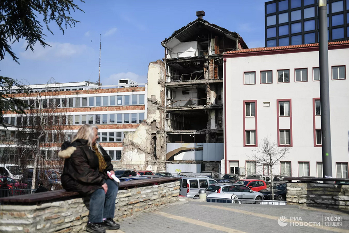 (Белград. Здание телецентра с последствиями разрушений бомбежек НАТО)