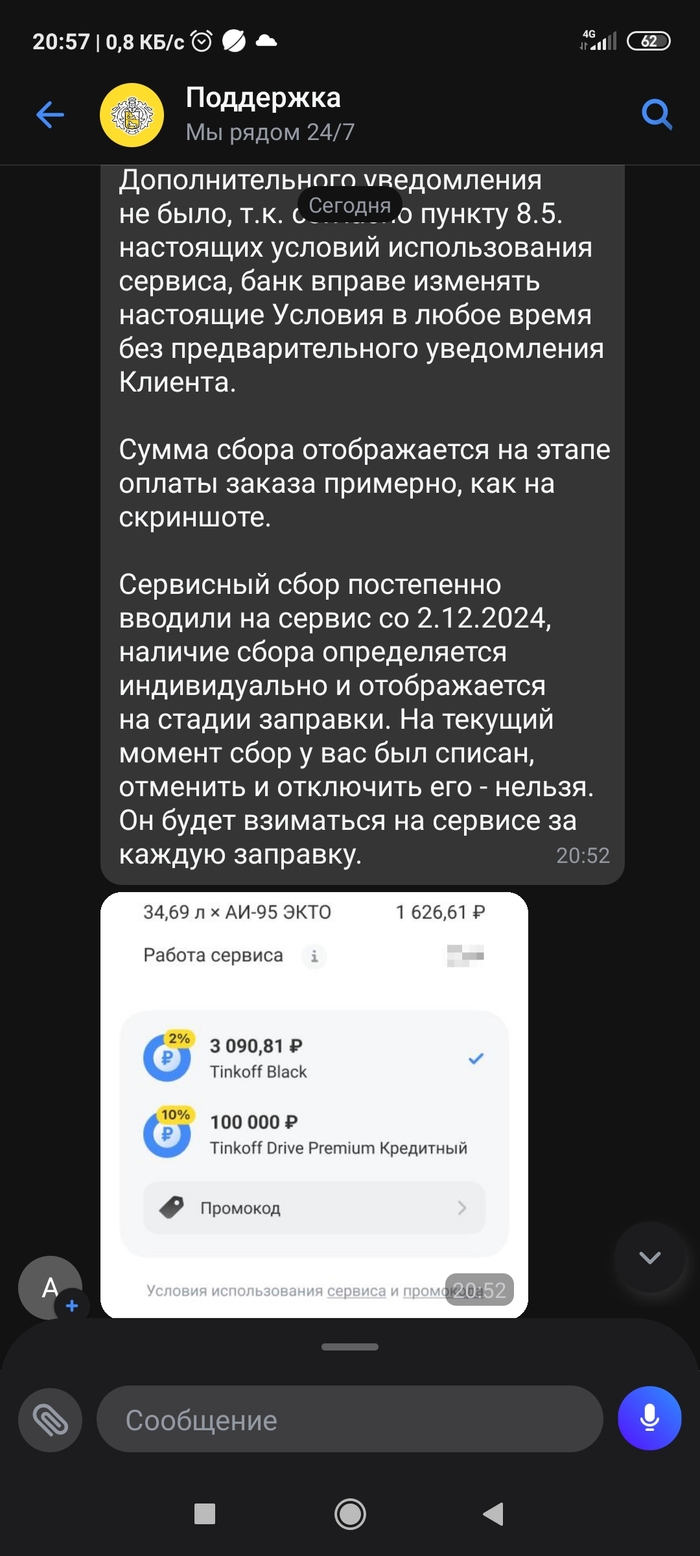 Сервисный сбор АЗС, Тинькофф. Сила пикабу победила?