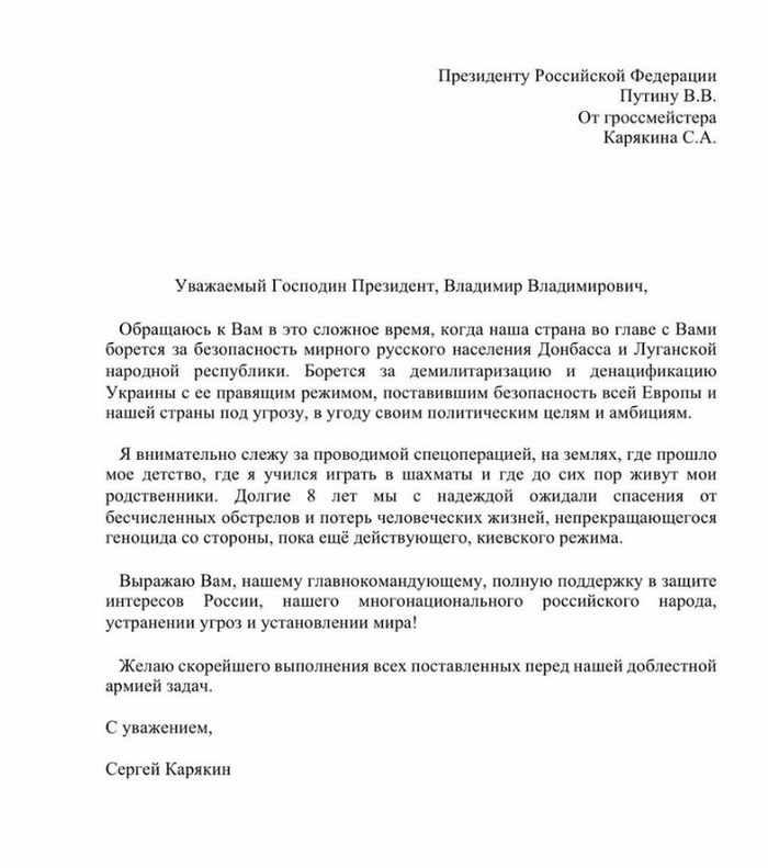 Увы, по прошествии 8 месяцев никаких позитивных изменений в деятельности ФШР я не вижу. Исполнительный директор Марк Глуховский, выступивший инициатором подписания открытого письма против СВО, спокойно проживает в Израиле и все так же остаётся на своей должности, несмотря на полные провалы в управлении (как минимум, отсутствие на рабочем месте) и коррупционные скандалы. Подавляющее большинство шахматистов и региональных федераций не получает от ФШР никакой поддержки. Помощь молодым, перспективным шахматистам ничтожна. Главный принцип Федерации - «Гений должен быть голодным». Многие талантливые спортсмены переезжают в другие страны, и никто даже не выходит с ними на диалог. Как человек неравнодушный, я не могу стоять в стороне и молчать!