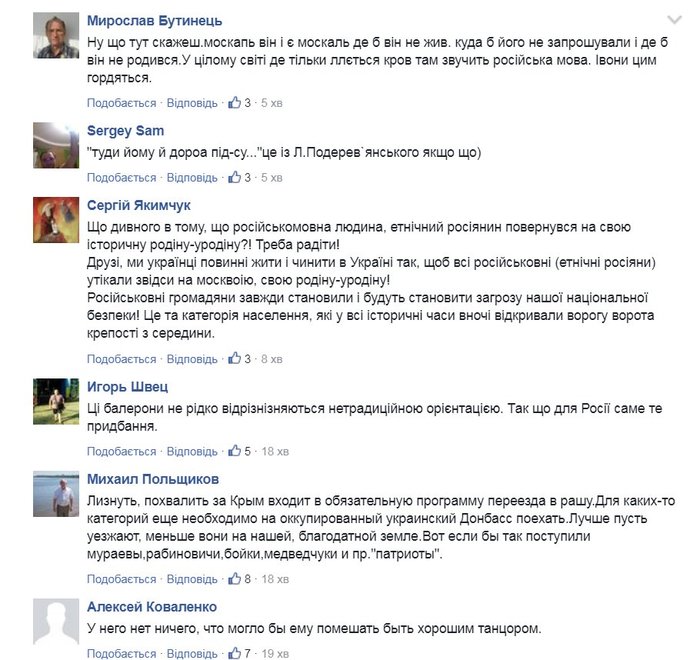 "Я родился в Херсоне, имею украинский герб на руке. И мне никто никогда ничего не говорил в России. Поэтому с гордостью ношу украинский герб и также поддерживаю президента Владимира Путина, и считаю, все-таки он добрый человек, за добро. И как бы его люблю и поддерживаю", - сказал он журналистам в Кремле после церемонии вручения госнаград.