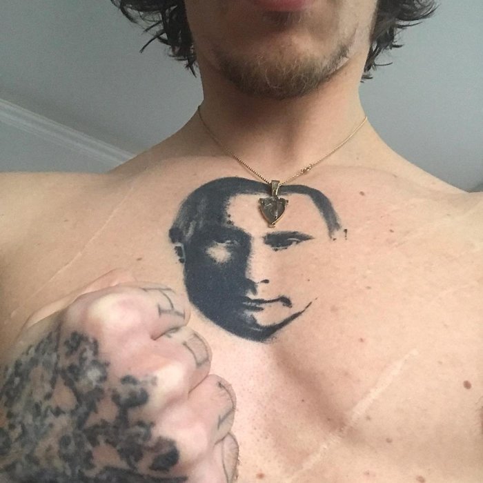 "Сегодня третий раз я жал руку ему. И три татуировки. Бог любит троицу", - сказал он.