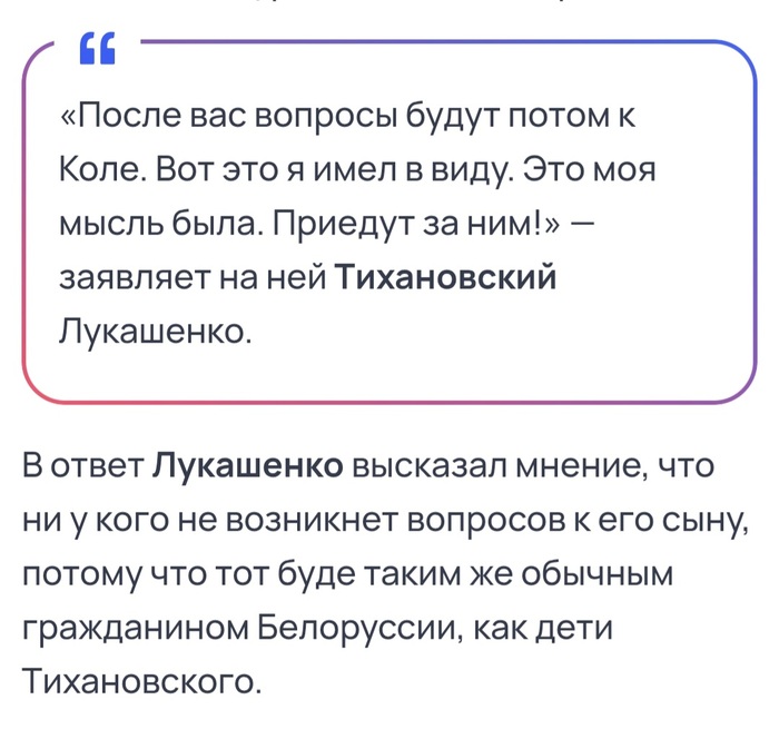 Но и считать Тихановского окончательно потерявшим связь с реальностью, я бы поостерёгся, не факт, что его высказывания, не часть какой то игры. В очередной раз...
