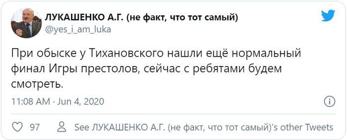 Если у кого-то и были в этом сомнения, то их развеял сам Лукашенко, который спустя месяц в эфире канала «Беларусь-1» заявил следующее: «Да, я дал сигнал с Тихановским. Я что-то не так делал? Я переживал за свою страну, за которую я пока еще отвечаю. И буду отвечать всегда – в любом качестве».
