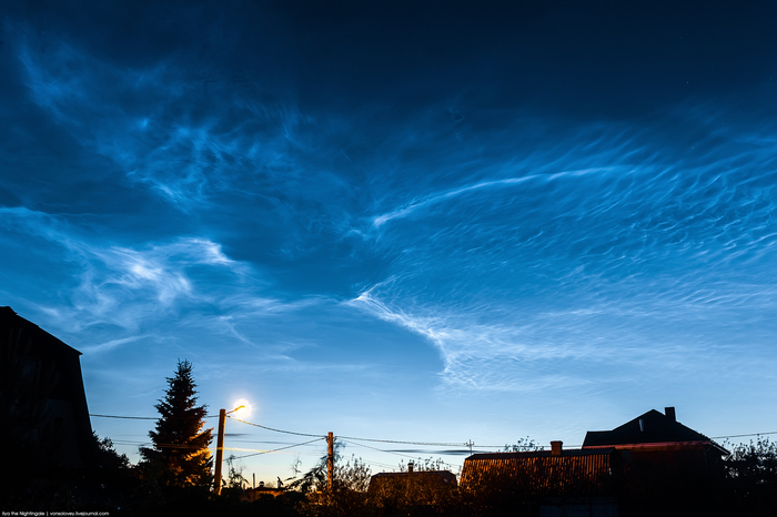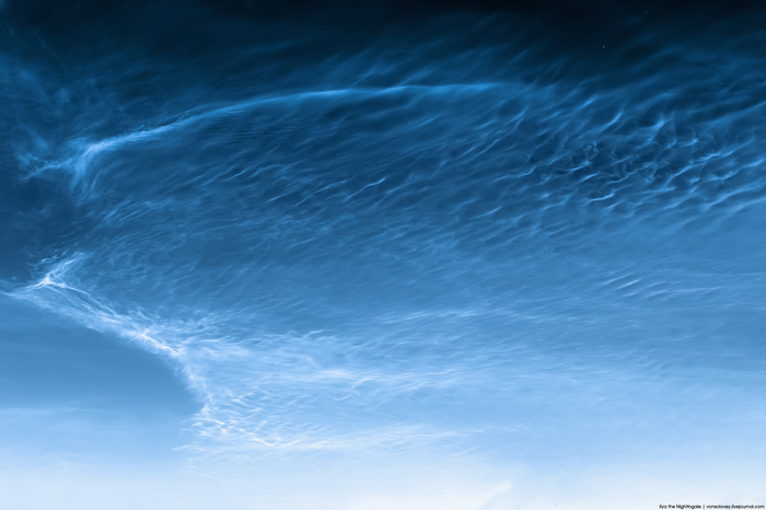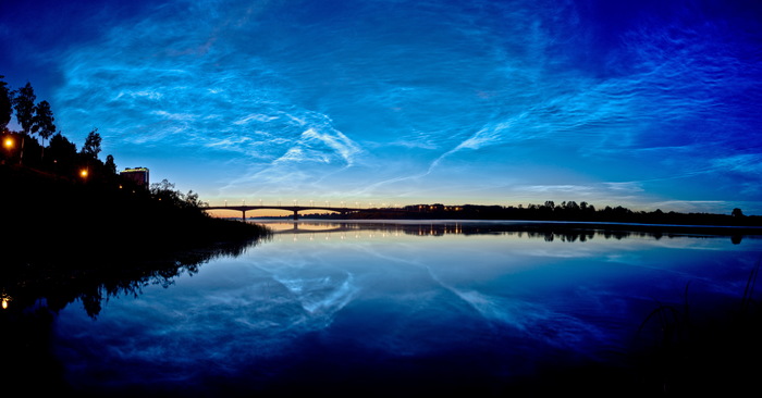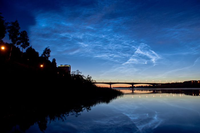 Сейчас в наших широтах самое благоприятное время для наблюдения серебристых облаков – самых высоких облачных образований. В дни близ солнцестояния они максимально ярки, т.к. солнце не опускается под горизонт очень глубоко.