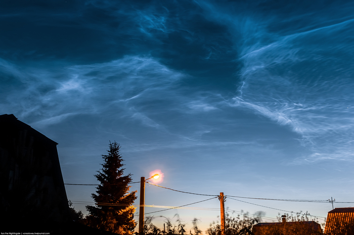Если наблюдатель сомневается, что за облака он видит, подсказываю: сквозь серебристые облака великолепно просвечивают звёзды.