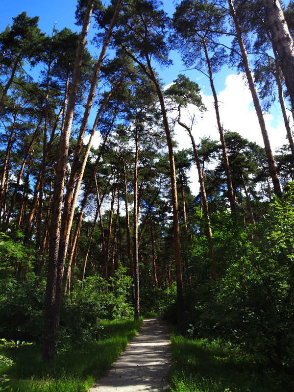 Через каждые 50 метров от дорожки вглубь леса сделаны ответвление, эдакие рукотворные полянки, на которых установлены большие скамейки. Временами их занимают парочки, но чаще всего скамейки стоят пустыми...