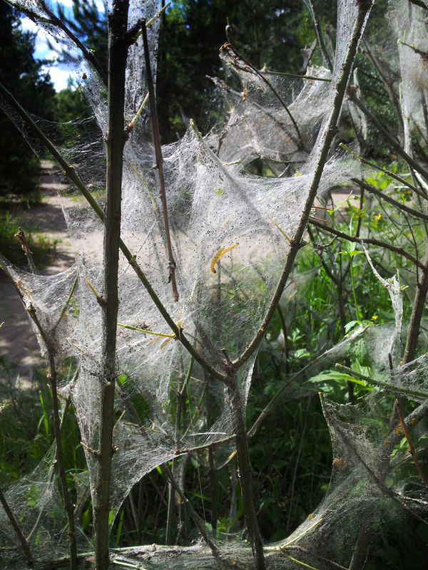 Хозяевами паутины оказались... гусеницы! Огромное количество гусениц, целые колонии в каждом кусте!
