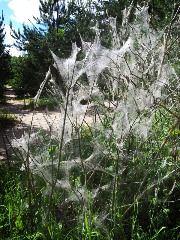 В парке временами встречаются подобные кусты, полностью оплетенные паутиной: