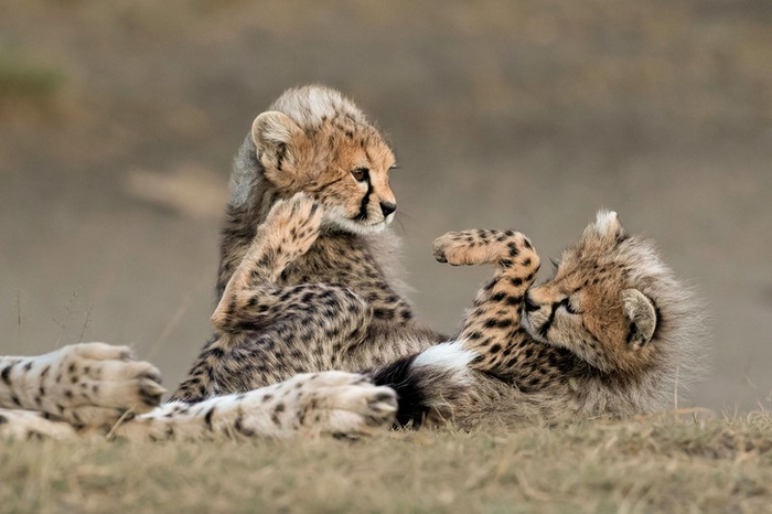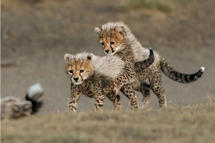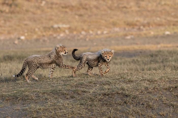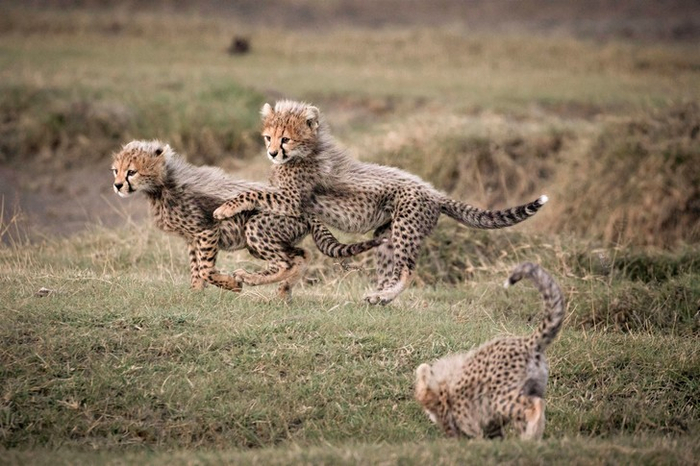 Танзания (Восточная Африка), национальный парк Серенгети. Португальский фотограф Педро Ферейра ду Амарал запечатлел котят гепарда во время игры. Мама вела трёх малышей в укромное место, чтобы устроиться на ночлег, но по пути её полные сил детёныши решили немного порезвиться.