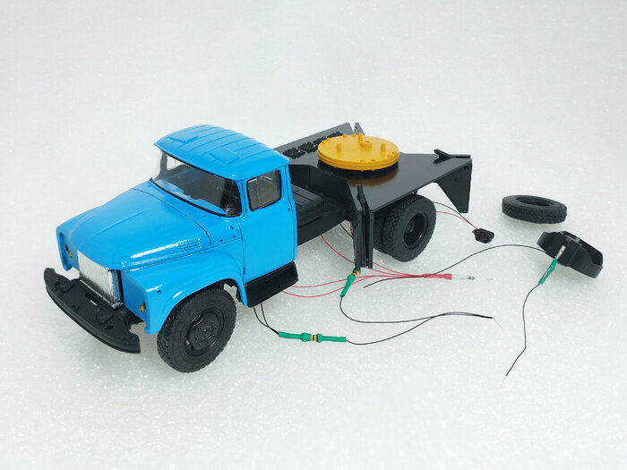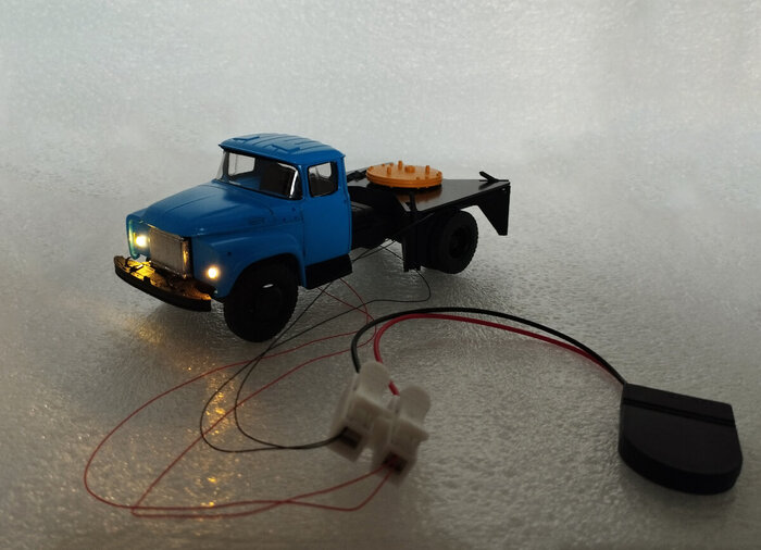 Переходим к пайке цепи и её монтажу. Вопрос как всё подключить я уже решил в предыдущих электро-проектах (например: ГАЗ-21Р "Волга", ГАЗ-14 "Чайка", ГАЗ-24 "Волга" или олимпийский РАФ-2907, где включаются не только огни фар и задних фонарей). А как быть тут? Модель то совсем маленькая!