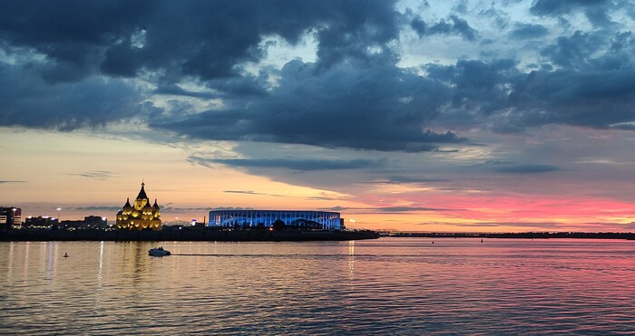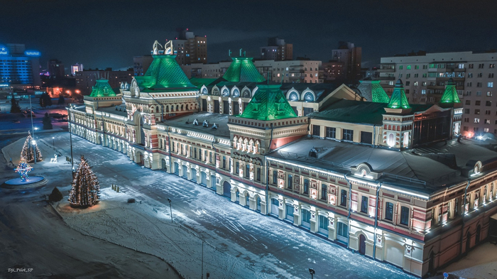 Например, в этом году Нижний Новгород был новогодней столицей России, и местом главной елки стала именно территория Ярмарки. Нижегородская ярмарка по праву считается одной из главных достопримечательностей города. На фото здесь просто общий вид в таких же сумерках, как в сериале (фото из интернета):