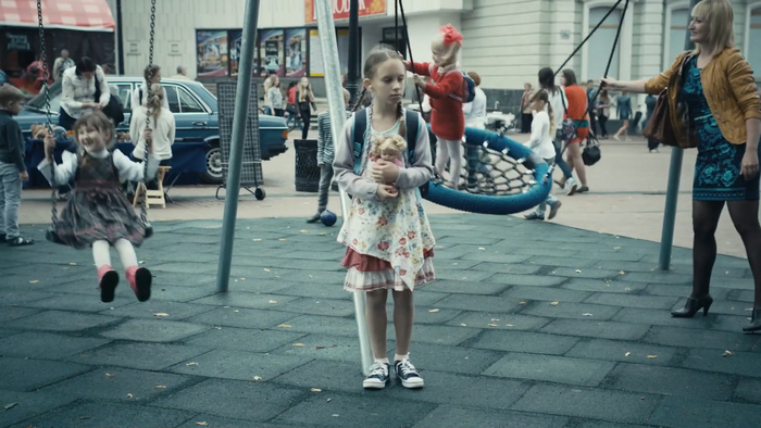 Вернемся в центр ловить похитителя девочек. Девочек он встречает вот на этой детской площадке (кадр из сериала):