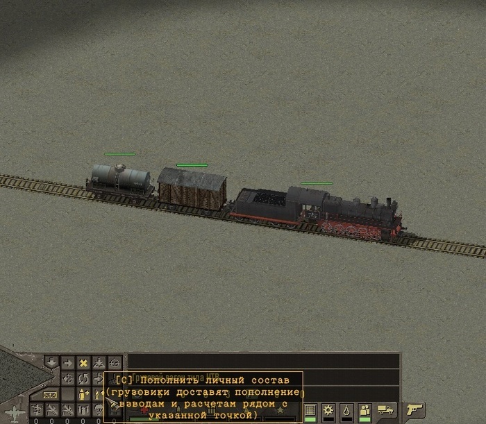 Обычный грузовой вагон получил команды на пополнение боекомплекта и личного состава (да, текст временный, его потом поправим).