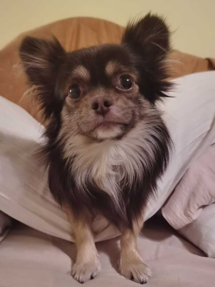 Сегодня около 12 дня выбежал из дома по ул. Садовая малыш Митя, без жетона, ошейника и одежды, в домашнем виде. Чихуахуа миник с голубыми глазами. Есть клеймо и документы. 5 часов поисков не дали никаких результатов. Если вы видели собаку, видели соседей или знакомых с новой собакой, похожей на Митю, или где-то наткнулись на объявление- прошу, позвоните! Вознаграждение обязательно 89201341341