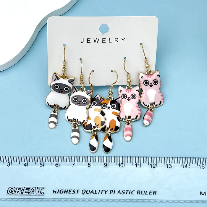 Серьги-подвески женские из эмалированного сплава с забавными кошками. Стоят около 189 руб. за 3 пары. Ссылка на комплект