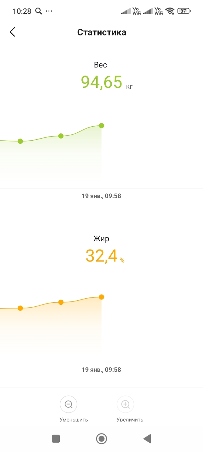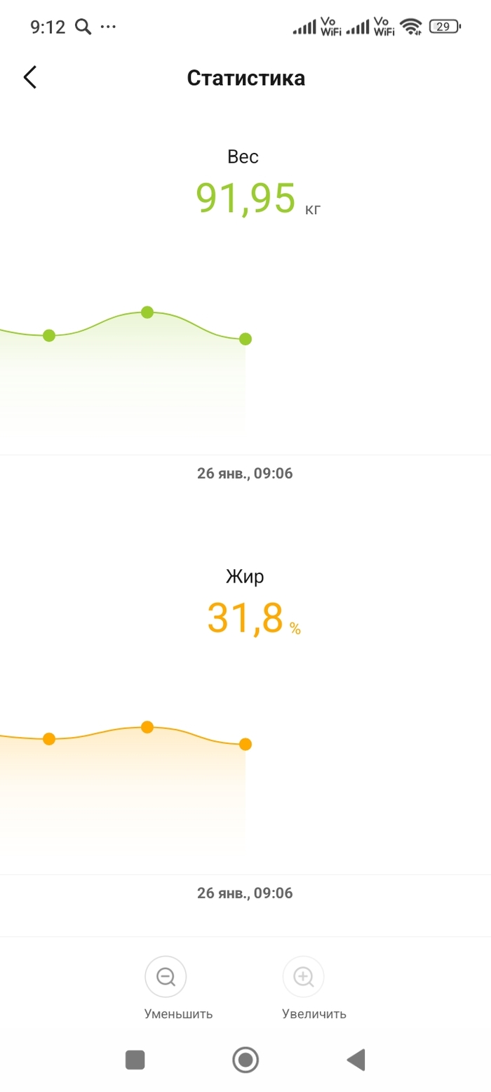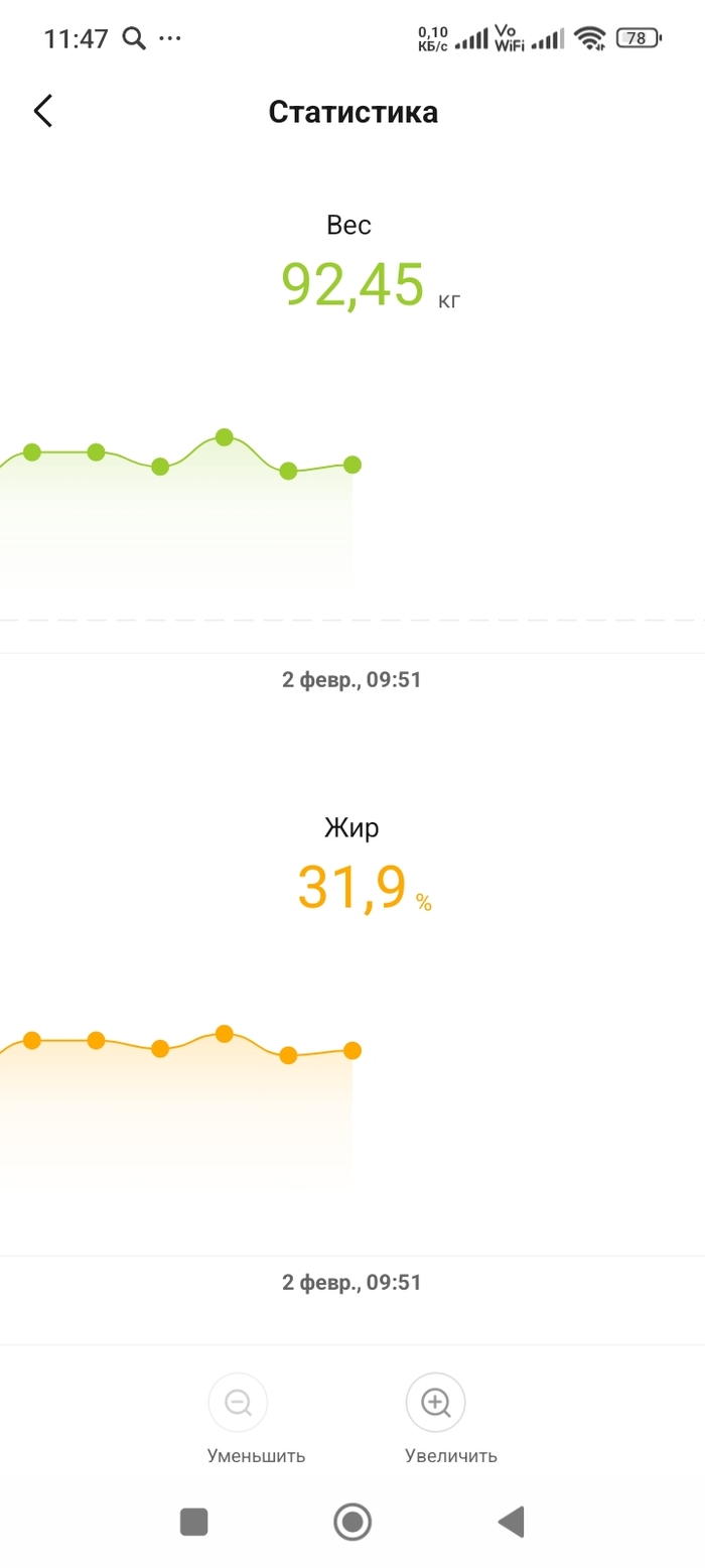 7. - 9 кг за полгода. с 15 июля я пытаюсь меньше есть. С 30 августа мы пошли в зал,стали пытаться шагать шаги. Мне плохо часто в лесу когда идем в гору,от этого хочется плакать,я в юности по лесу могла бегать,я знаю его наизусть. Пот льет ручьями на маленьких горках,на больших у меня одышка и колет бок/сердце/жопа. Я пытаюсь есть меньше,но не могу бросить фастфуд,я тупо пытаюсь уложиться в калории и продолжаю есть дерьмо. Открываю для себя интервалку и вижу небольшой,но регулярный результат. Обещаю себе увидеть цифру 6 первой на весах до конца года и вижу ее. Впереди праздники