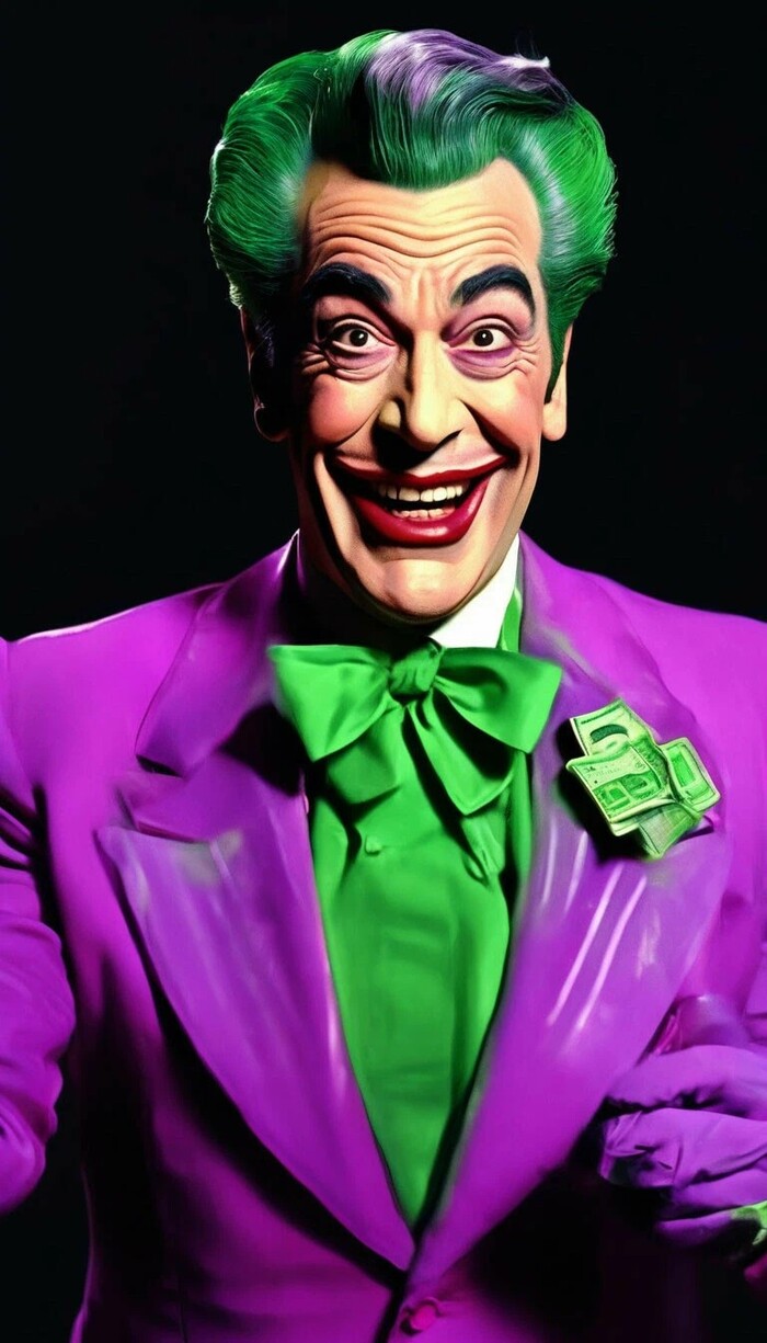 Первым появлением Джокера в кино стал сериал «Бэтмен» 1966-го года, где он был несколько изменён в плане облика: у него светло-зелёные волосы, расчёсанные в «шарик», и улыбка, вычерченная ярко-красной помадой. Его костюм сделали тёмно-розовым, а перчатки — фиолетовыми; здесь фигурирует и Джокермобиль — разноцветный фургон. Имя злодея и история его происхождения не раскрывается; непонятно также, может ли он избавляться от своего грима, или это результат падения в кислоту. Этот Джокер — больше неудачный комедиант, чем преступник, и все его нападения — именно шутки, а не серьёзные злодейства.