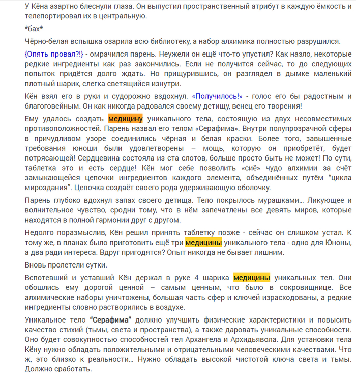 Впрочем, больше, чем ей, он вдохновлялся китайской новеллой «Убить эту ведьму», а потому нас ждет не веселое и задорное прочищение чакр, формирование камня силы в каждом из узлов мощи, призванных очистить ци и поднять ее с четвертого уровня пятого ранга на пятый уровень пятого ранга, чтобы в последствии приступить к обретению души божественного зверя; а хуево прописанное прогрессорство.