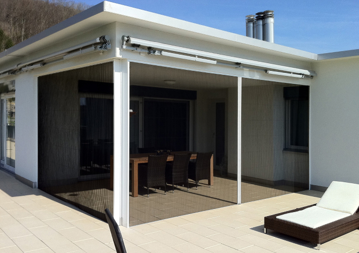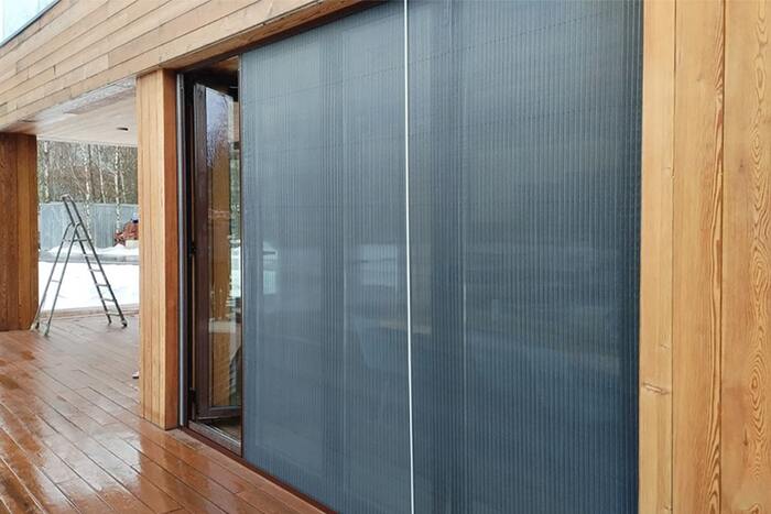 Основное достоинство сетки плиссе — закрывать большие проёмы, где стандартные рамочные или раздвижные модели не справляются (порталы, террасы, веранды, беседки). Для этого они и были разработаны изначально.