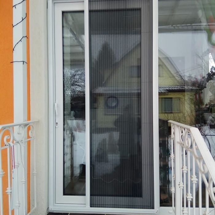 Это конструкция с раздвижным сеточным полотном, которое не даёт насекомым, тополиному пуху и листьям попасть в дом. Оно формирует равномерные горизонтальные либо вертикальные складки по типу гармошки.