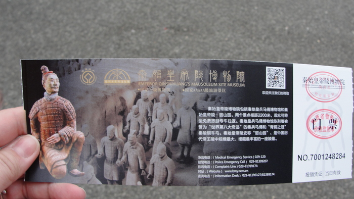 Я на автобусе доехала до железнодорожного вокзала и на привокзальной площади села на междугородний автобус, на конечной оставновке которого мне нужно было выйти и пройти к терракотовой армии. Билет на автобус стоил 7 юаней. Автобус полностью заполнился, водитель проверил, что все пристегнуты и мы поехали. В тишине ехать не пришлось. За свою работу принялась женщина-гид, которая очень громко что-то рассказывала всю дорогу.