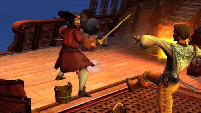 Морские сражения — это отдельное удовольствие. Управление кораблём, выбор правильного угла атаки, использование пушек и абордажные схватки — всё это было продумано до мелочей. Каждое сражение было уникальным, будь то битва с небольшим торговым судном или сражение с мощным испанским галеоном.