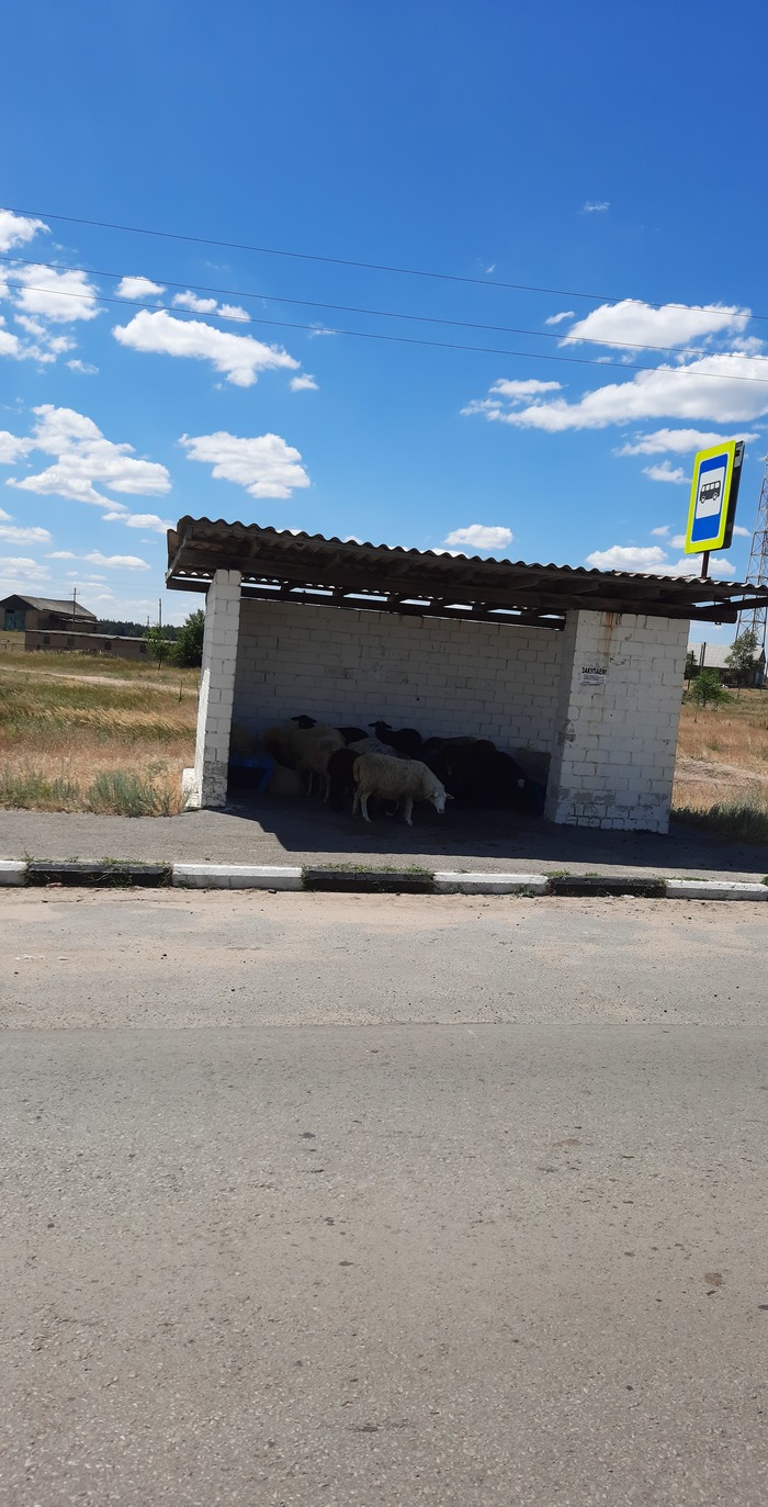 Среди сырой тишины вдруг слышно поскребывание. Кошачья дверка открывается и на крыльцо выползает полосатая банкетка.