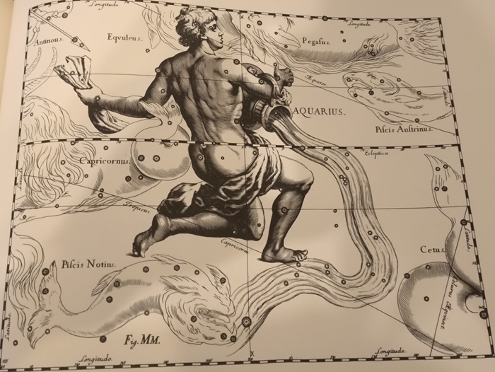 Вот созвездие Водолея из старинного звездного атласа Яна Гевелия. Юноша с сосудом, из которого течёт вода. То ли Ганимед, то ли Девкалион...