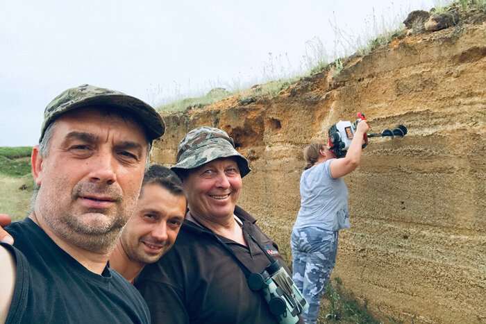 Нам повезло. Ну, как повезло? Пришлось две недели по выходным объездить не одну сотню километров и обойти не один десяток обрывов, чтобы найти подходящую для съёмки нору.
