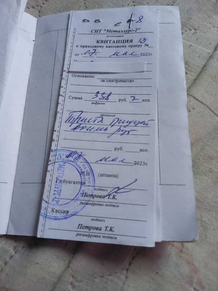 С.И. по-прежнему организовывает сбор средств наличными с выдачей липовых квитанций, вы спросите почему липовых? Да потому что в адрес нескольких садоводов уже пришили исполнительные листы о взыскании задолженностей за неоплаченные членские взносы + электричество + пеня, а при предъявлении квитанций бабушками за подписью некого бухгалтера Петровой Т.К. суд предпочел признать эти квитанции недействительными, а у С.И. ответ один - нет в базе данных ( к слову базой данных она называет ПК времен царя гороха с WIN95). Оп-ля. А оказывается бухгалтер-то Петрова Т.К. на момент принятия оплаты уже и не числится бухгалтером, да и вообще уволена другим числом.