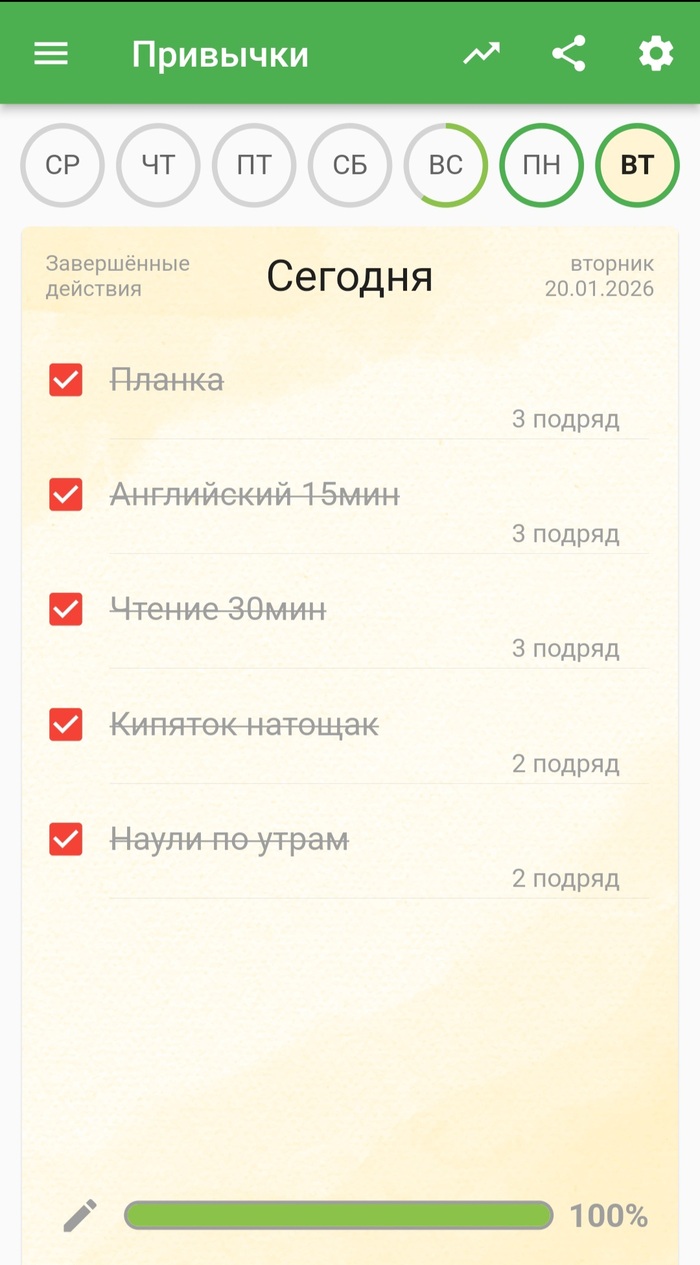 Едем дальше. Подключила мч к процессу. Хоть он и сопротивлялся, говоря что планка это бесполезно, что он занимается(нерегулярно) спортом и что нужна система и замеры времени, и сама цель ему не ясна. Потому что человек, по природе своей, ищет прямых последовательностей между действием и результатом. И зачастую не дожидается результата. В общем после потуг и сопротивлений, он всё таки сделал это. Осознавая ценность этого процесса или нет. Просто сделай это. А завтра повтори, а затем еще 98 раз. Тогда поговорим о ценности.
