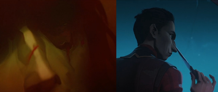 Во-вторых, во флешбеке хорошо заметно, что у Силко на лице две небольшие царапины (на носу и верхней губе), а так же большая, судя по всему, рваная рана под левым глазом.