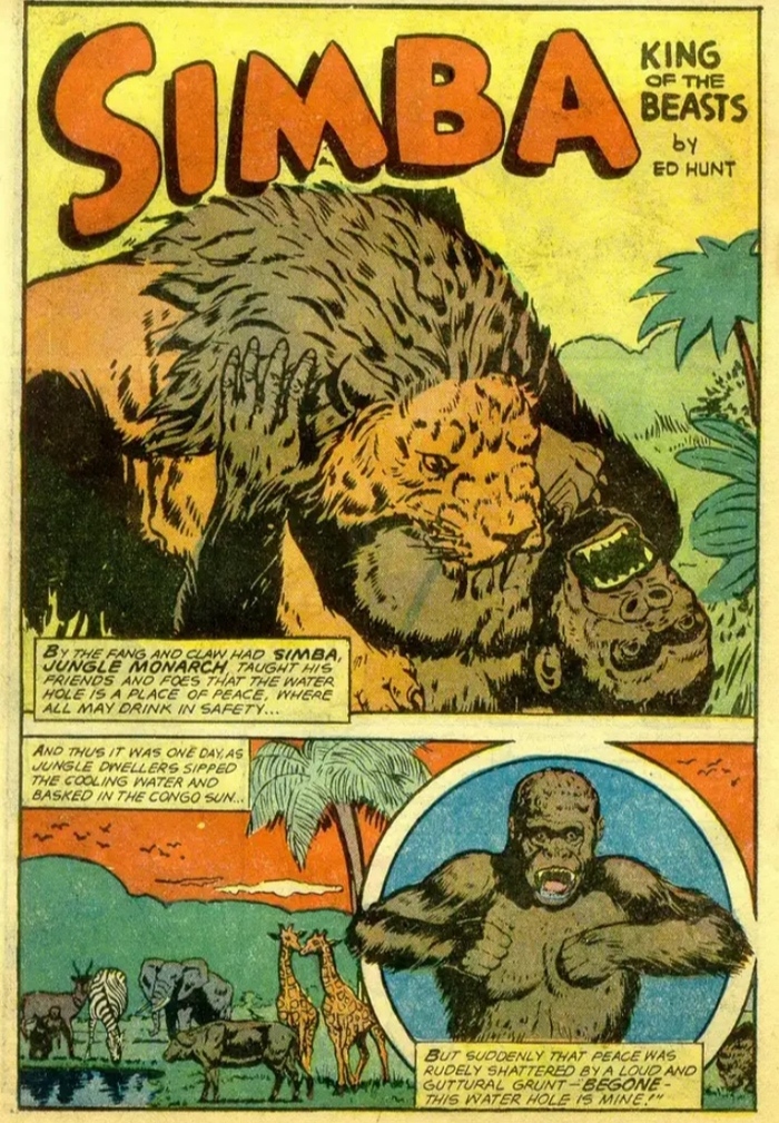 Здесь Симба - царь зверей был обычным персонажем, который появлялся в комиксах джунглей на протяжении всей своей публикации.