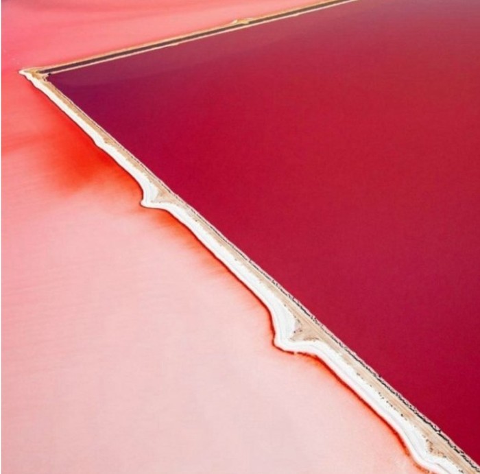 Снимки сделаны английским фотографом Стивом Бэком (кроме первого). Он арендовал небольшой самолет и направился на юго-западный берег. Фотограф был поражен симметрией и красотой фермы. По его словам, розовая окраска на фото не такая впечатляющая, как в жизни. С воздуха лагуна выглядит просто фантастически.