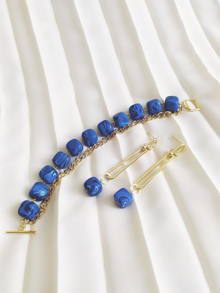 [моё] Серьги Браслет Украшение Полимерная глина Рукоделие Рукоделие без процесса Синий Синий камень Увлечение Хобби Любимое дело Длиннопост
