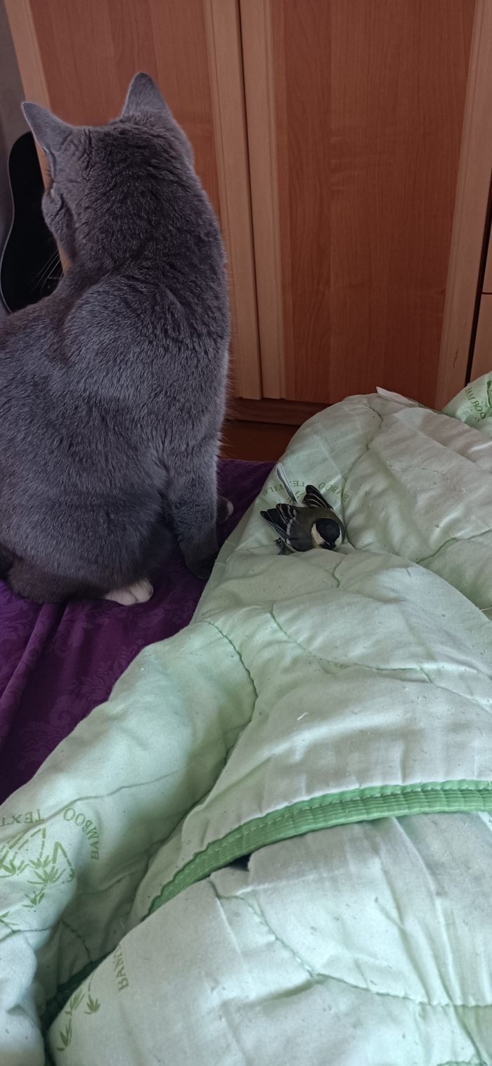 Полное кино в первоисточнике, как черно-хохлатая синица тырит шерсть у серой американской лисы