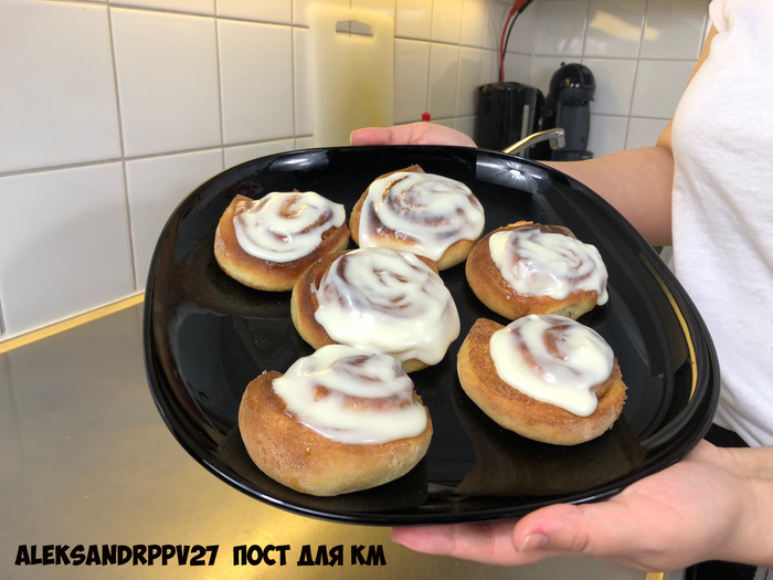 Лет десять назад я впервые увидела на фудкорте некую бирюзовую с синим вывеску. Из-под нее растекался по залу одуряющий аромат корицы, на который хотелось лететь, как бабочка к огню. Увы, источник аромата - невероятные плюшки - обжигались еще и ценой, по тем деньгам было 70 рублей за штучку, что у меня вызвало просто шок :). Синнабон - это очень вкусно!.. Но плюшки с корицей и сливочным сыром я пеку сама :). Как их при этом называть, я думаю, неважно. Автор рецепта, когда-то найденного мной в ЖЖ, звала сinnamon rolls, а у нас дома называют просто «мамины плюшки». А вот фудфотограф из меня, к сожалению, хреновый. Так что тем, кто захочет повторить, придется верить на слово :).