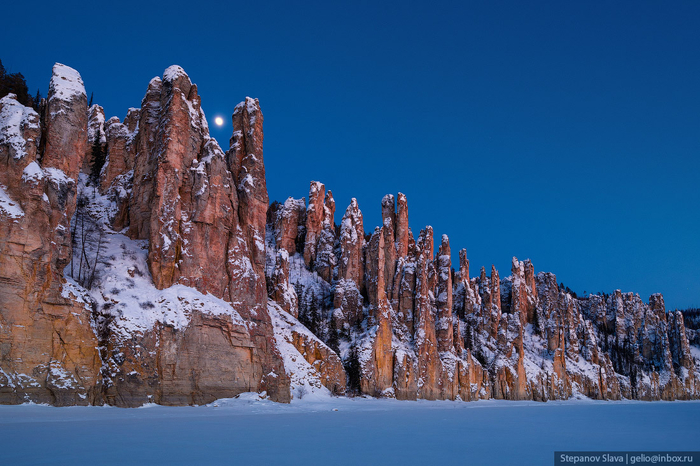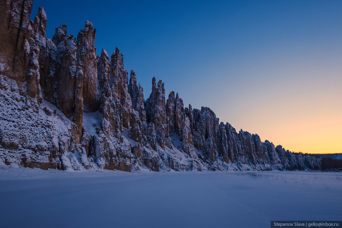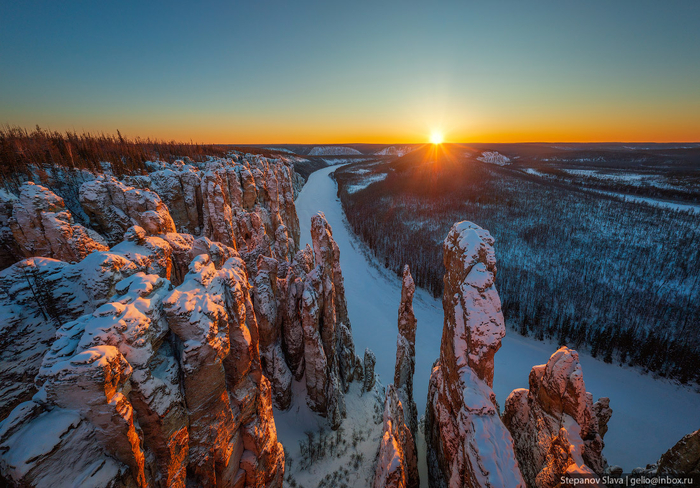 1. Синские столбы находятся в Якутии — самом большом регионе России. Это также самый холодный регион — именно в Якутии находится полюс холода Северного полушария Земли, где температура опускалась до рекордных −68 °C, а по другим данным даже до −77,8 °C.