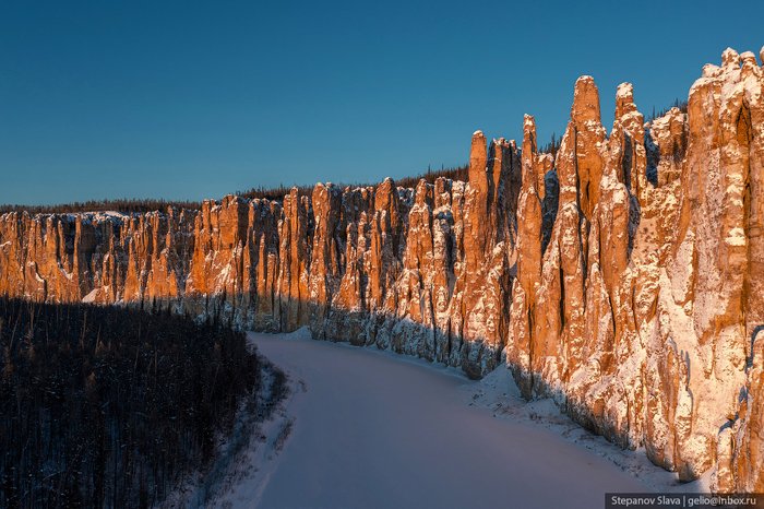 Они возвышаются над берегами реки Лена, создавая великолепный природный ансамбль.
