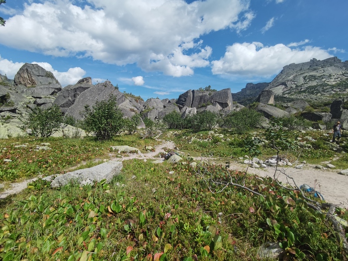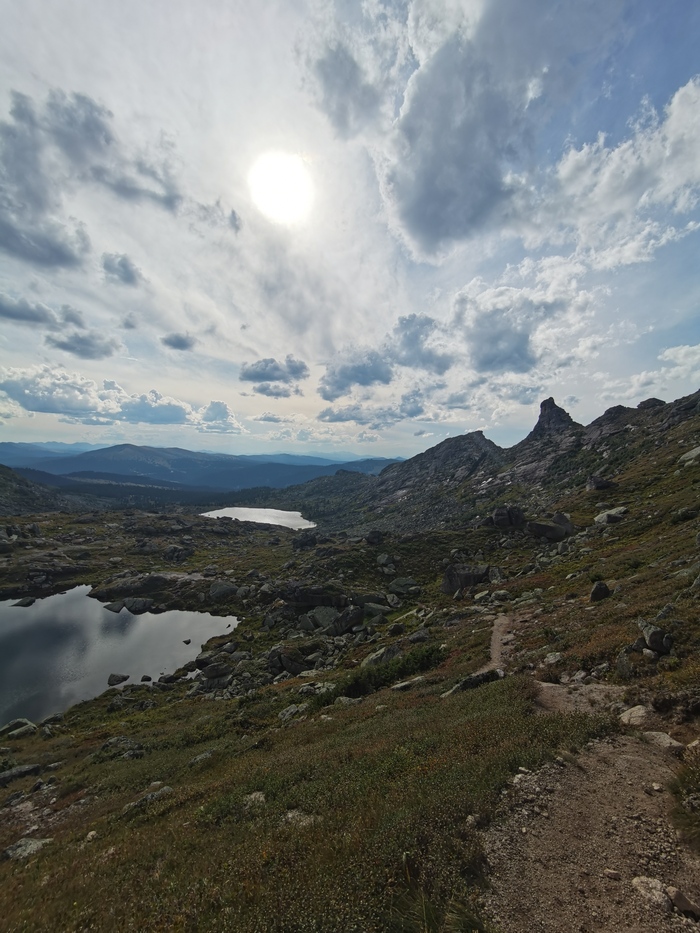Немного насладившись прохладой воды, ведь солнце уже во всю пекло, мы двинулись дальше. А дальше нас ждал огромный курумник. На этом участке, пожалуй, была тропа с самыми большими камнями за наш маршрут. Сначала кажется, что это должно быть проще, ведь ничего не должно внезапно покатиться, но на деле это труднее, особенно с рюкзаком.