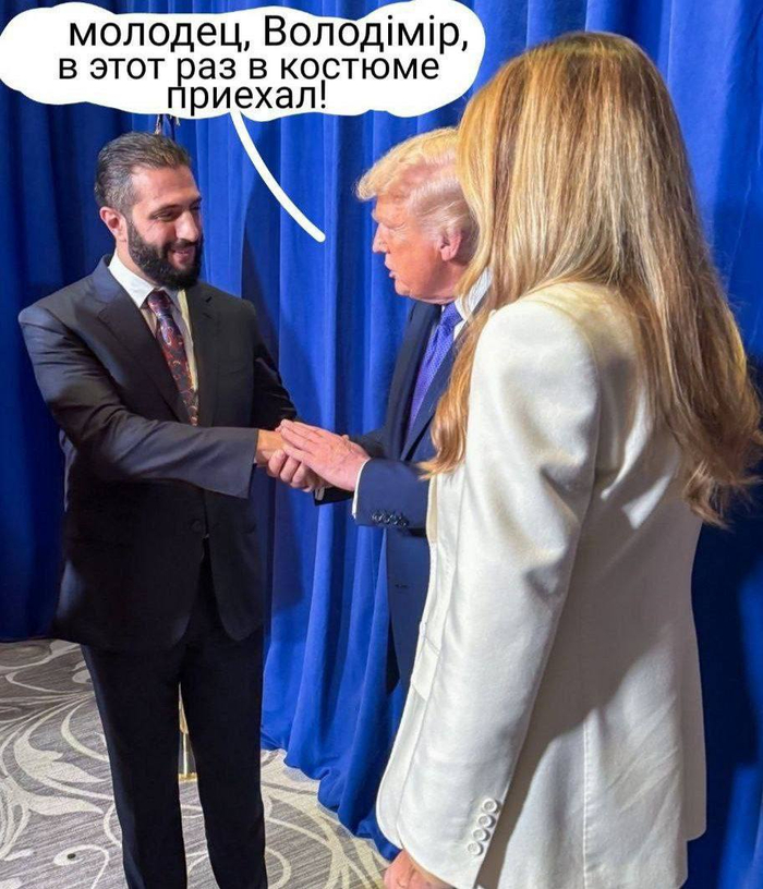 Просроченный фюрер Украины и экс-террорист ИГИЛ*(террористическая организация, запрещенная в России), а ныне самопровозглашенный главарь Сирии встретились в Вашингтоне.