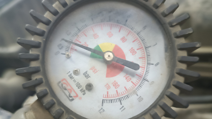 Подав давление пистолетом, наблюдаем за показаниями манометра.