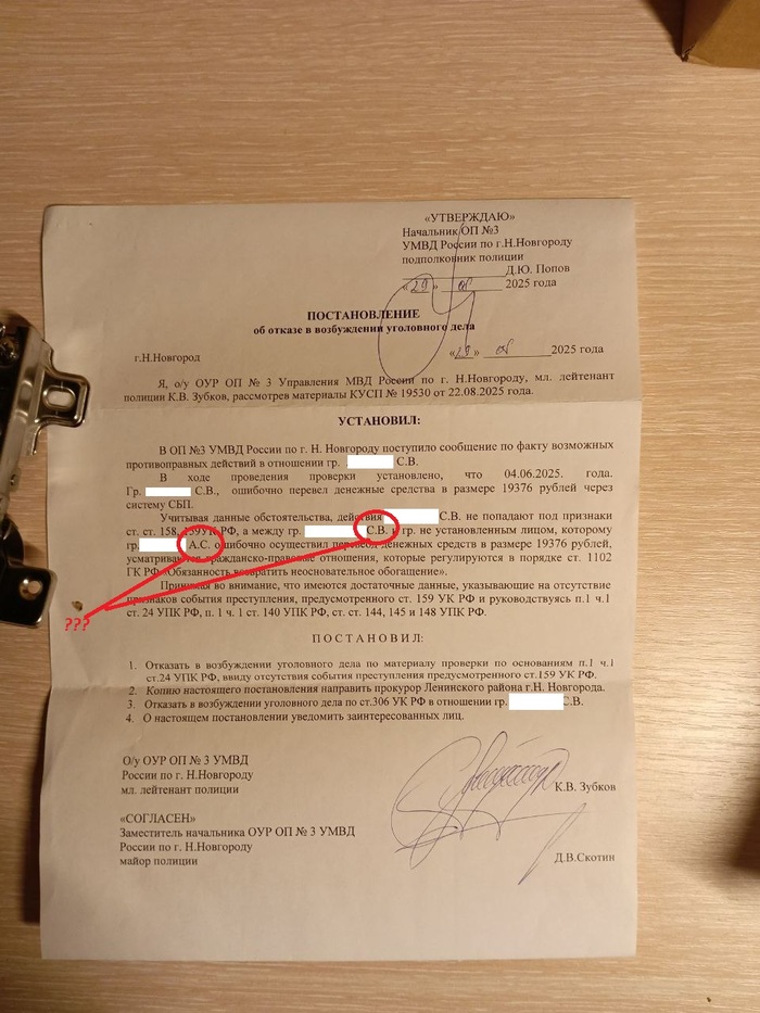 Уж так уважили, что в результате всего Сашка аж бумажку подписал: мол, так и так, мне, товарищу сирому да убогому, разъяснено: сам перевёл денежные средства, сам нажал подтверждение, сам отправил деньги. Оснований для возбуждения уголовного дела нет, решать вопрос - только через получателя.