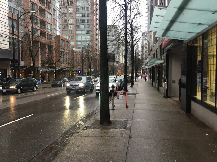 Снегодождь сменился просто дождём. От этого город пропах унынием. Кто-то скажет, что это очень атмосферно, и я соглашусь, но в то время и в том месте, нам хотелось тепла, солнца и меньше азиатов. К слову об азиатах. Мы были очень поражены, насколько много в Ванкувере вывесок на иероглифах. Их ОЧЕНЬ много. Каждый второй человек, которого мы встречали был азиатом. Нет, не подумайте, я не расист, но мы совершенно не ожидали увидеть такую картину. Наверное из-за погоды, город нам не понравился. Он был очень грустный, унылый, пустой и темный. Людей было очень мало.