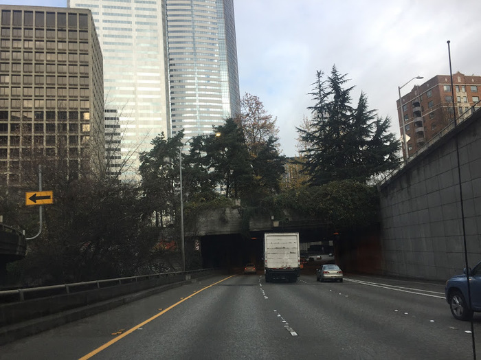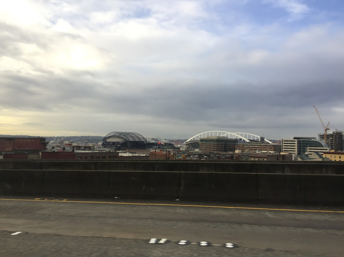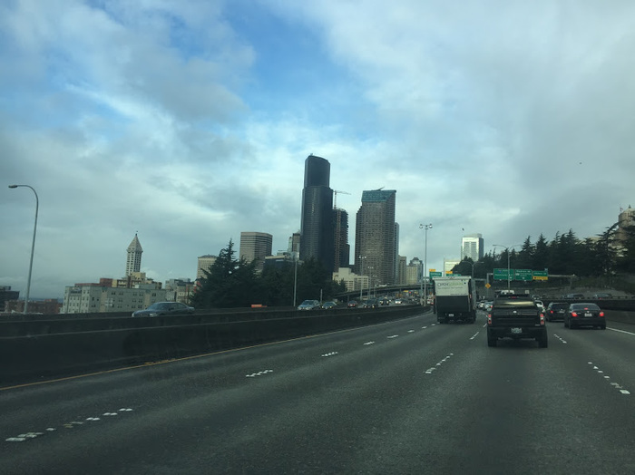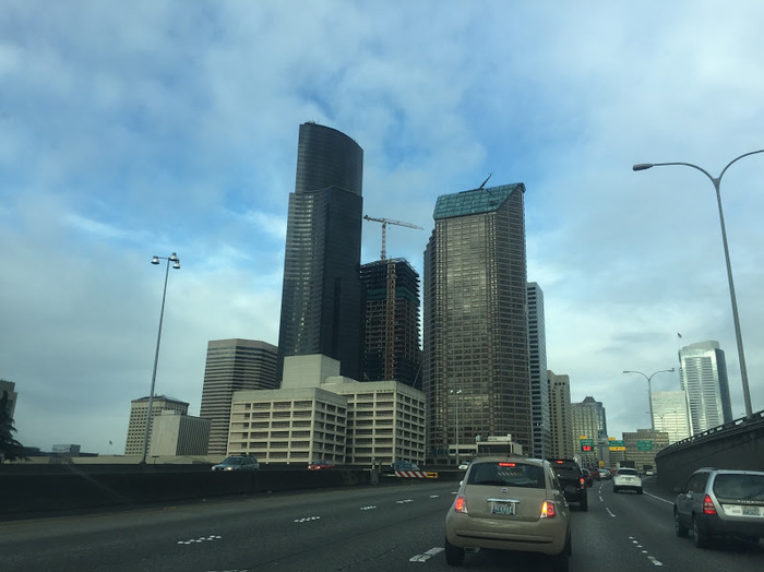 И вот после какого-то времени в пути, на горизонте появляются небоскрёбы, леса и поля начинают сменяться домами и ангарами. Мы приближаемся к Сиэтлу.