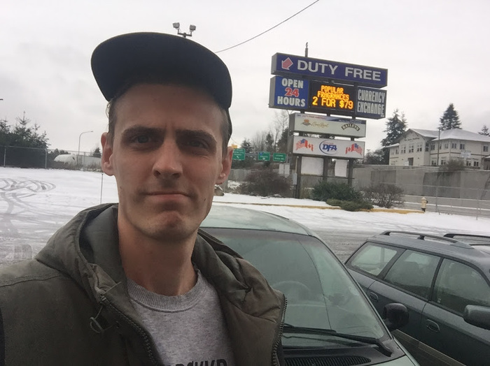 Начали появляться указатели, что скоро будет пограничный контроль. И вот мы добрались до границы! Съемка запрещена. Мы встаем в очередь из машин, и довольно быстро добираемся до пограничника. Выходить естественно не надо. Отдаем паспорта. Смотрим на пограничника. Сначала у него было смятение. О смотрит на нас, на паспорта, на машину. Спрашивает, откуда машина? Мы говорим, что купили, документы на неё есть. Он спросил сколько стоила, как едет? В целом спросил у нас что хотим делать в Канаде, в вкратце описали ему наш маршрут. Всё это было в очень дружелюбной форме. И все вопросы заняли у нас минуты три - четыре. И вот у нас штампы в паспортах, о пересечении Канадской границы. УРА! МЫ В КАНАДЕ. Первое, что бросается в глаза, это Километры в час. Всё в Километрах в час, как же это приятно!! Никогда не думал, что буду так рад этому. Тут я понял, почему на всех американских машинах есть маленькая дублирующая шкала на спидометре в километрах. Второе что сразу бросилось в глаза - грязь и разруха. Честно, мы подумали, что мы вернулись в Россию. Грязный снег, обшарпанные дома. Не знаю почему такой контраст со штатами, но он реально был.